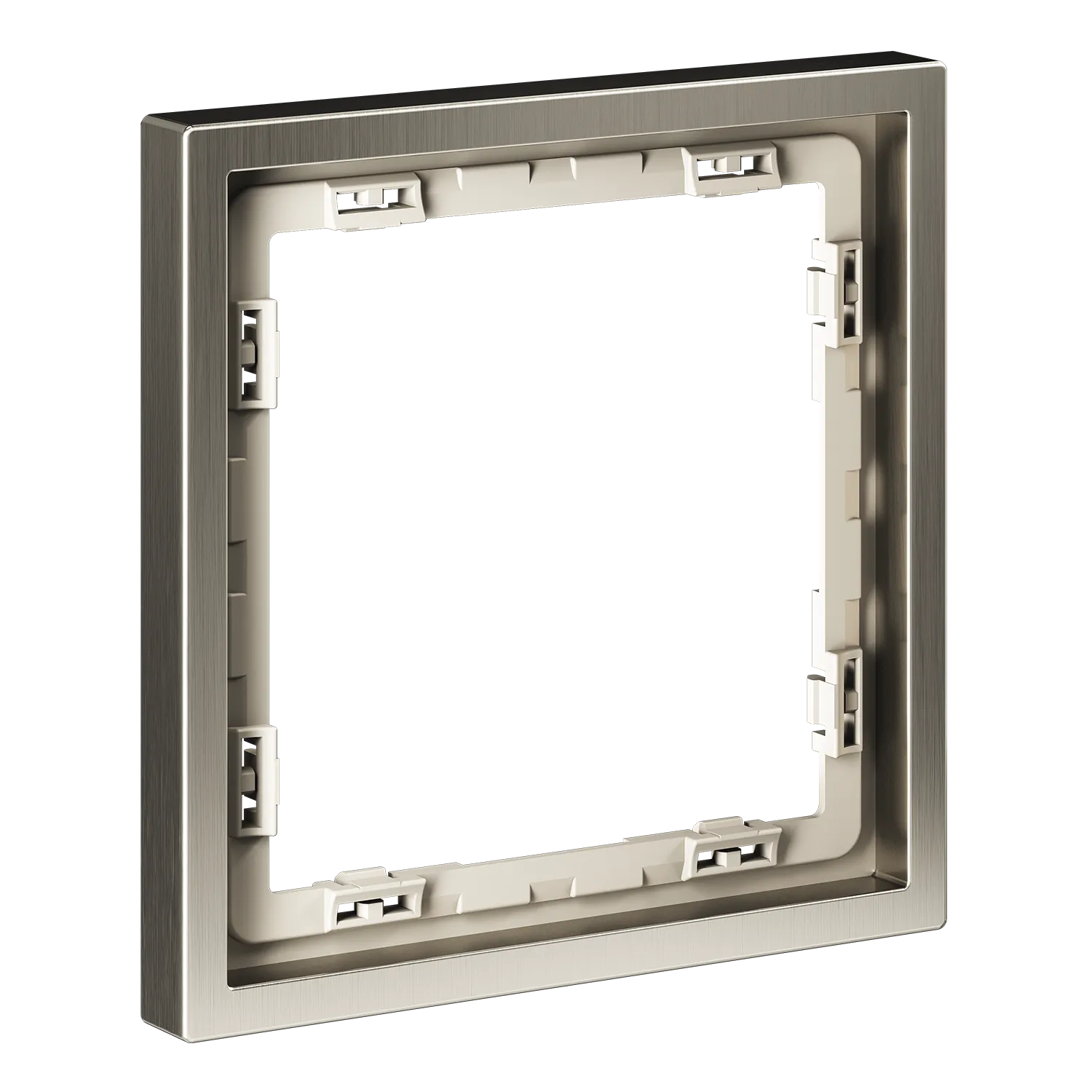 Рамка изготовлена методом точного литья цинкового сплава под давлением — это гарантирует идеальную геометрию без микротрещин и внутренних напряжений. Сверху нанесено многослойное гальваническое покрытие цвета «никель»:
