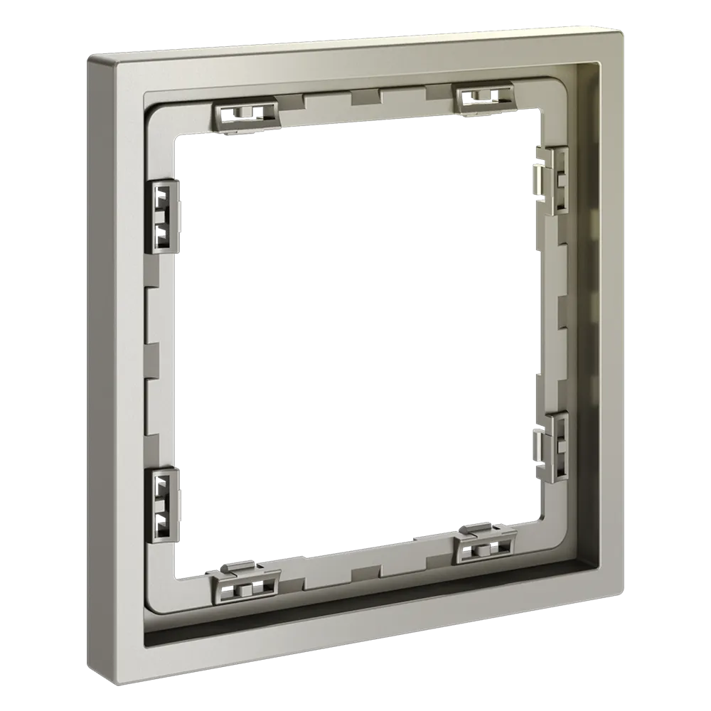 Обеспечивает быстрое и легкое соединение механизма с рамкой. Восемь фиксаторов по периметру нивелируют неровности стены и надежно удерживают конструкцию.